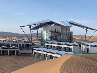 在与京帝瓷砖背胶合作的全国工程案例当中,有各行各业的地标性建筑,小的家装客户案例数不胜数,在京帝官网里所呈现的客户案例基本都是拿典型的案例列举给广大的业主和客户参考。今天我们谈谈酒店工程案例之一宁夏中卫沙坡头沙漠酒店,星星沙漠酒店是港中旅(宁夏)沙坡头旅游景区内的沙漠休闲度假式品牌酒店,位于沙坡头景区腾格里沙漠腹地8km处,海拔1430m,占地面积5000㎡,与沙漠星星酒店毗邻。 沙景木屋落座于沙漠之中,装修风格精致典雅,设施设备配套完善,享有“会呼吸的房屋”美誉,它承载的不仅是人们渴望亲近自然的美好情怀,更是现代科技无法抹去的乡愁。沙漠观景房可无死角观沙海,房间还配备升降床、身份证识别进入等高科技设施系统。房屋结构均以成品环保建材组装而成,健康舒适、装修精美、格调高雅、物品齐全是广大游客亲子度假、养生、对话自然的心灵憩所。