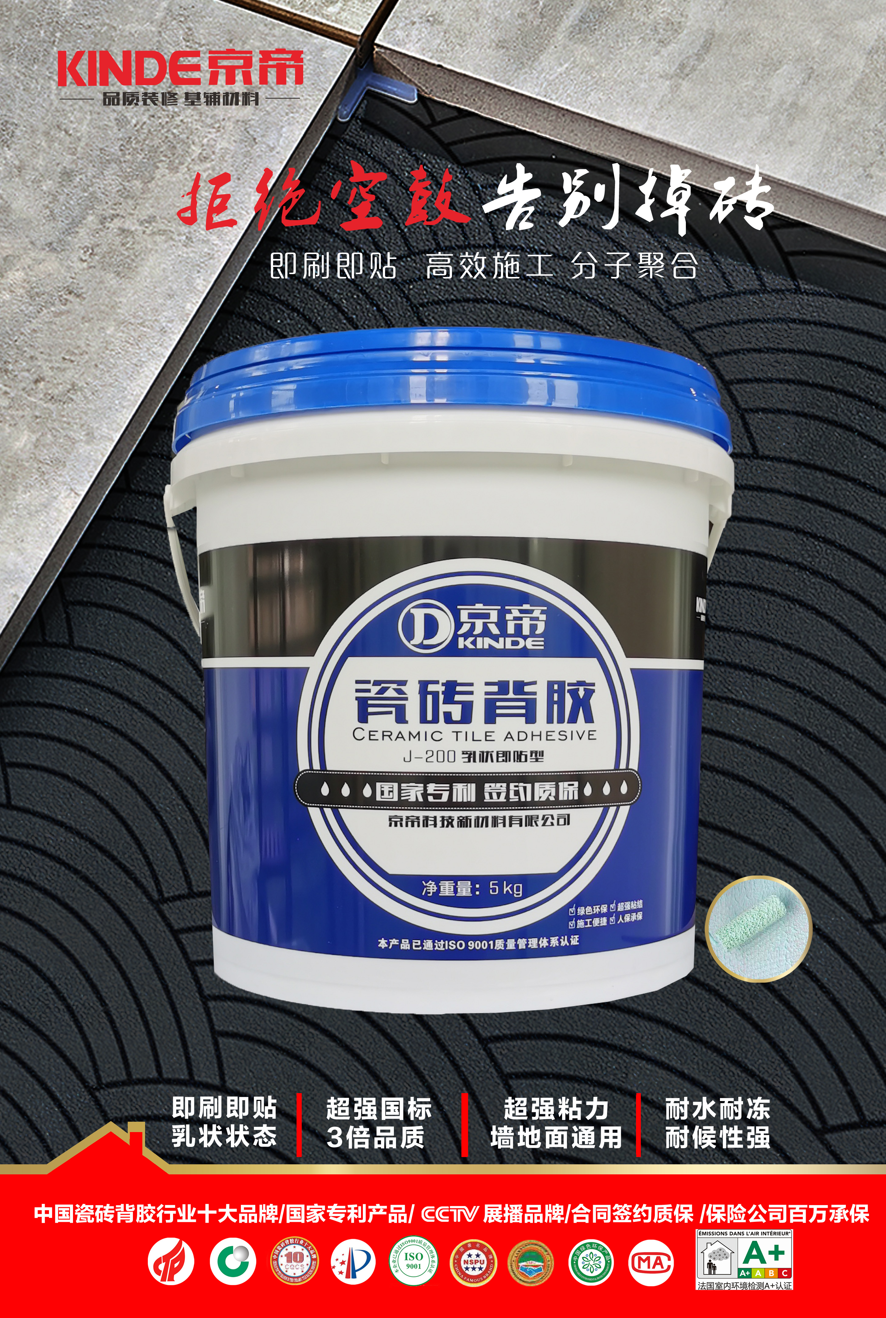 对比市面常见的背涂胶,京帝J200瓷砖背胶不仅提高了粘结力度,同时具有即刷即贴的特性。粘结性能优异,耐水、耐老化,具有特别超强的双向粘结作用确保瓷砖和石材不脱落。